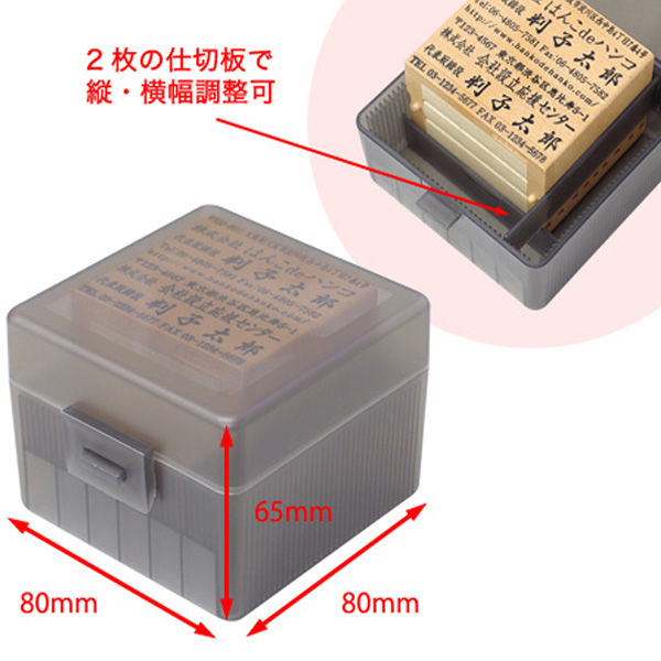中には可動式の仕切り板がついているので収納するゴム印のサイズによって収納部分を仕切ることができます。